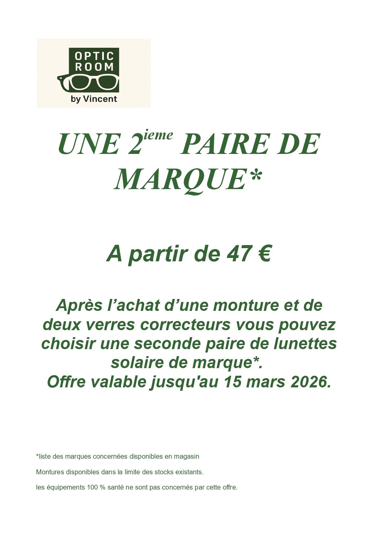 ( Offre non applicable sur les lentilles de contact ni sur les équipements relevant du 100 % santé. )